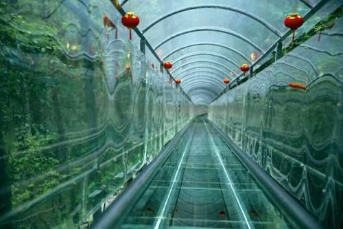 玻璃水滑漂(水滑道),底面和兩側都是玻璃的,游客坐在氣墊船上,在里面滑行。滑道是一種無載人工具滑道,靠重力自然下滑,速度由游客自己控制,是自然景區中一種新型的娛樂與代步為一體的參與性娛樂設施!