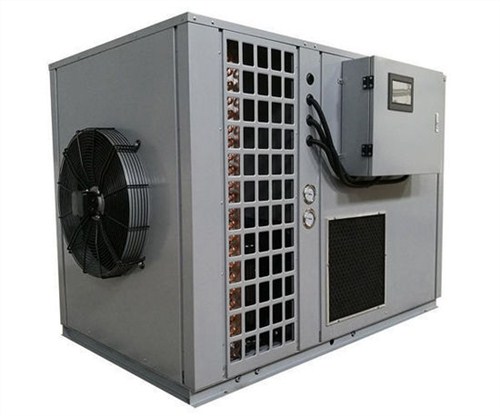 空氣能熱泵除濕烘干機,主要有壓縮機、冷凝器、膨脹閥、蒸發器四大件組成,通過讓介質不斷完成蒸發(吸取室外環境中的熱量)——壓縮——冷凝——(在室內烘干房中放出熱量)——膨脹閥節流——再蒸發的熱力循環過程,從而將外部低溫環境里的熱量轉移到烘干房中,冷媒在壓縮機的作用下在系統內循環流動。它在壓縮機內完成氣態的升壓升溫過程,它進入內機釋放出高溫熱量加熱烘干房內空氣,同時冷媒被冷卻并轉化為液態,當冷媒運行到外機后,液態迅速吸熱蒸發再次轉化為氣態,同時溫度可下降至-20℃~-30℃,這時吸熱器周邊的空氣就會源源不斷將熱量傳遞給冷媒。