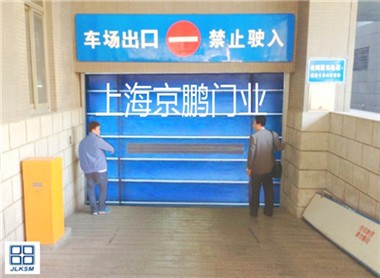 上海京鵬車庫堆積門是門框、門頭、變頻器、plc、控制器控制電機轉動、門簾片為工業基布上升、下降、行人車觸碰地磁自動上升、經過后自動下落門簾。表面由基布和多條鋁合金抗風條組成,適用于風大、車庫進出的門洞。