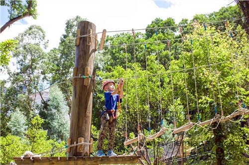 叢林飛躍是一項在樹上進行的探險項目,集冒險、運動、娛樂、挑戰于一體的戶外運動項目。它是用各種各樣的障礙環節將樹連成一條線路,玩家需要通過懸空橋梁、網道、步道、木桶、泰山秋千、飛狐索道和其他趣味環節等方式進行樹木間的探險,通過爬、滑、游、跨、跳、飛等動作越過所有障礙,到達終點。在整個運動中,匯集了高空、速度、力量、毅力等戶外探險所必備的元素,為參與者提供了感官上的刺激。叢林飛索設計的線路有難易等級,參與者可以按照自己的節奏安全前進,從4歲至70歲的游客均能參與。