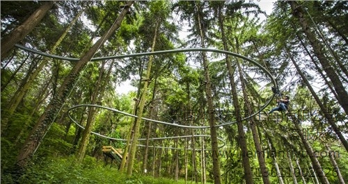飛軌穿云項目起源于意大利多樂美地山區,該項目結合了溜索、過山車與滑道的特點,以高品質的不銹鋼材料制造。飛軌穿云項目可以帶你在叢林的彎道間穿梭,如鳥兒般飛過樹林.