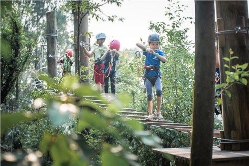 體驗難度三星,高空探險,跨過搖擺的木樁,爬過垂直的巖石,穿梭于樹間,感受泰山的生活。
