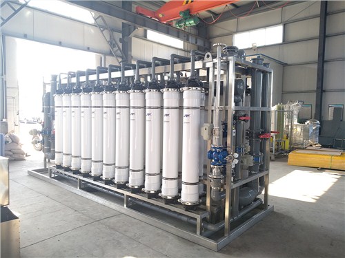 2.3.1實(shí)驗(yàn)設(shè)備:超濾實(shí)驗(yàn)選用全體超濾實(shí)驗(yàn)設(shè)備,超濾膜選用美國(guó)KOCH公司出產(chǎn)V1072—35一PMC的膜組件,該膜為聚醚砜中空纖維膜。預(yù)過(guò)濾器選用首要經(jīng)過(guò)袋式過(guò)濾器(過(guò)濾精度為50—100 trm)去除水中較大顆粒的懸浮物,之后進(jìn)人超濾設(shè)備進(jìn)行過(guò)濾,超濾產(chǎn)水流入超濾集水池。一起超濾集水池中的少部分水要用于超濾設(shè)備自身的反沖刷。選用主動(dòng)、手動(dòng)操控方法,過(guò)濾方法為全過(guò)濾。超濾選用l束膜組件,處理水量為4.9m3/h。聚醚砜超濾膜組件技能指標(biāo)見表3。