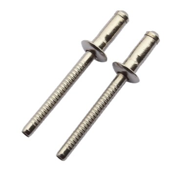 單鼓鉚釘鉚完以后釘芯將鉚釘釘體末端拉成鼓形鉚釘頭,從而把兩個被鉚接結(jié)構(gòu)件夾緊,并能降低作用在結(jié)構(gòu)件表面上的壓力。單鼓型鉚釘具有使用方便、防水性好、效率高、噪音低,能降低勞動強(qiáng)度等特點。