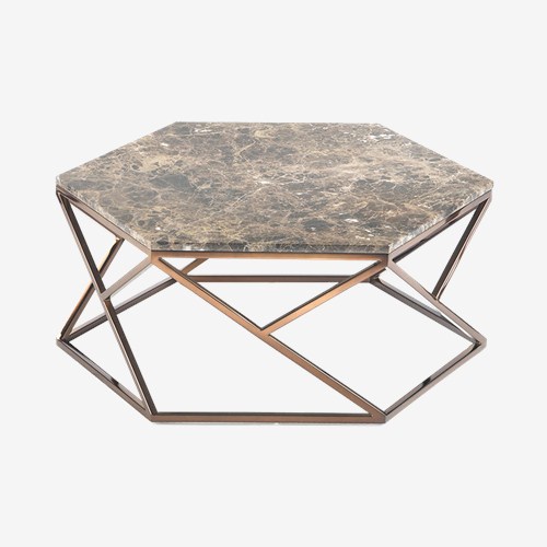 交錯(cuò)的金屬線條與地面平穩(wěn)接觸,自然地托起嵌入頂部的大理石臺面,讓大理石在金屬質(zhì)感的襯托下更顯高貴。