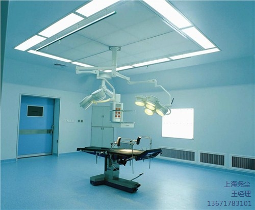 手術室不僅要求高度潔凈的空氣(進入手術室的空氣首先須經高效過濾器凈化),而且要求能控制氣流的流通方向(即采用層流超凈裝置),手術室內形成正壓環境,使氣流從潔凈度高的手術區域流向潔凈度低的區域,一股細小、薄層的氣流,以均勻的流速向同一方向輸送,并帶走和排出氣流中的塵埃顆粒(塵粒)和細箘。目前,層流手術室分為垂直層流式和水平層流式兩種。垂直層流式(Supply air ceiling for operating theatre)高效過濾器裝在手術病床的正上方,氣流垂直吹送,回風口設在墻面的四角,確保手術臺潔凈度達標,一般多采用垂直層流式效果較好。正是采用的這種垂直的層流式,在手術室內的頂部還設置了一個吊塔式的負壓吸引系統,將醫生在手術時呼出的空氣吸出塔外,進一步保證手術室的潔凈和無菌,降低手術的感染率。