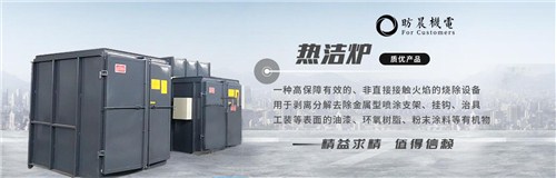 我們將需要脫漆、剝漆、脫粉、脫塑的物品(掛具或工件)放置在熱潔爐“裂解室(主分解室)”的“鋼結構載物小車”上,在“裂解室”內通過“裂解燃燒機”的加熱,此處我們隔絕燃燒機火焰(采用通風式“耐火爐膛”隔絕火焰,僅熱量輸出),使工件表面的有機物涂層逐漸分解為氣體(黑煙狀分解物),此過程需始終控制以保證分解物產生的速度與濃度,以保證氣體在進入“氧化室(副燃燒室)”時可以被完全處理。當氣體進入“氧化室”,通過“氧化燃燒機”高溫處理(約在600-900℃的環境),“補氧口”補氧燃燒主要生成二氧化碳和水蒸氣排放。熱潔爐所包含的兩套熱系統,均為獨立系統,其兩套熱系統均由電控系統自動控制爐內溫度氛圍,全過程通過程序自動控制噴水系統,嚴格控制分解速度與濃度。待設備自動停機后,爐內工件上只剩不受溫度影響的粉狀無機物,部分掉入爐底,少量剩余的只需輕輕敲打或水槍沖洗即可。