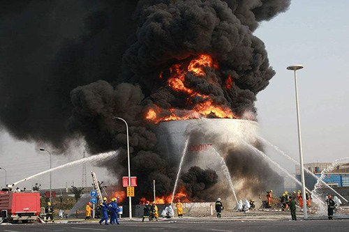 2006年8月7日中國石化集團管道儲運分公司儀征輸油站的G16號15 100000m3外浮頂鋼制儲油罐遭雷擊。