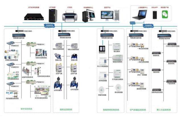 • 對建筑內(nèi)的機電設(shè)備如冷熱源、供暖通風(fēng)和空氣調(diào)節(jié)、給排水、供配電、照明、 電梯等以及能耗、建筑內(nèi)部環(huán)境等實施集中監(jiān)控和管理,并進(jìn)行分類管理