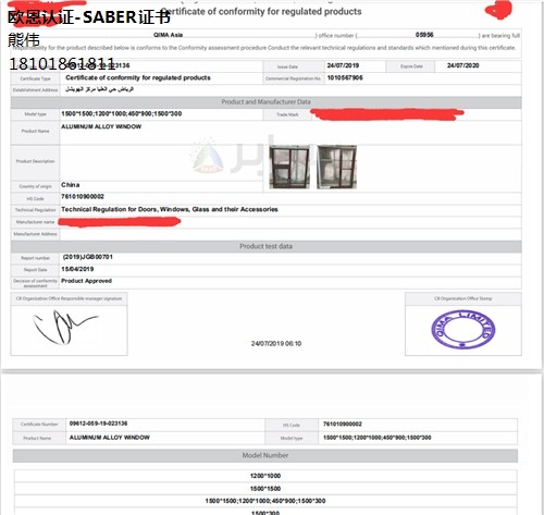 :所有產品需要通過由SASO建立的SABER在線系統來認證