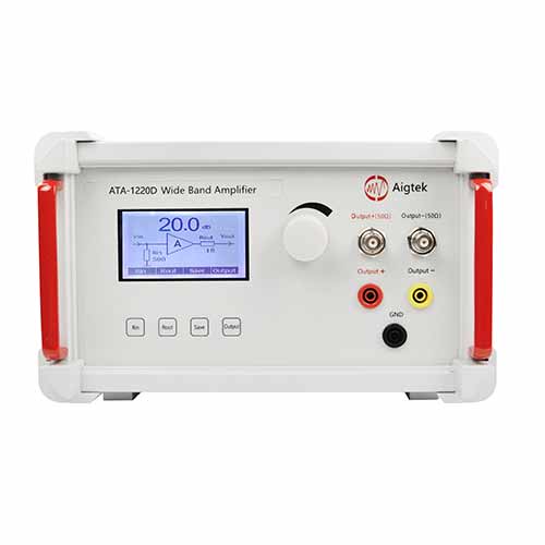 ATA-1220D 是一款理想的可放大交、直流信號的單通 道寬帶放大器。最大差分輸出 60Vp-p (±30Vp)電壓, 輸出電流 1Ap,可與主流的信號發(fā)生器配套使用,實現 信號的完美放大。