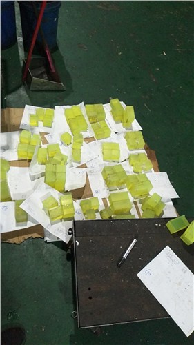 3.橡膠產品是由橡膠原料進行密煉機煉膠后制成的混煉膠作原材料,在煉膠時根據所需橡膠制品的特性而設計配方,并且定下所需要的產品硬度。產品制作成型由橡膠平板硫化機進行模壓成型。產品成型后進行飛邊處理,把產品表面處理光滑無毛刺。