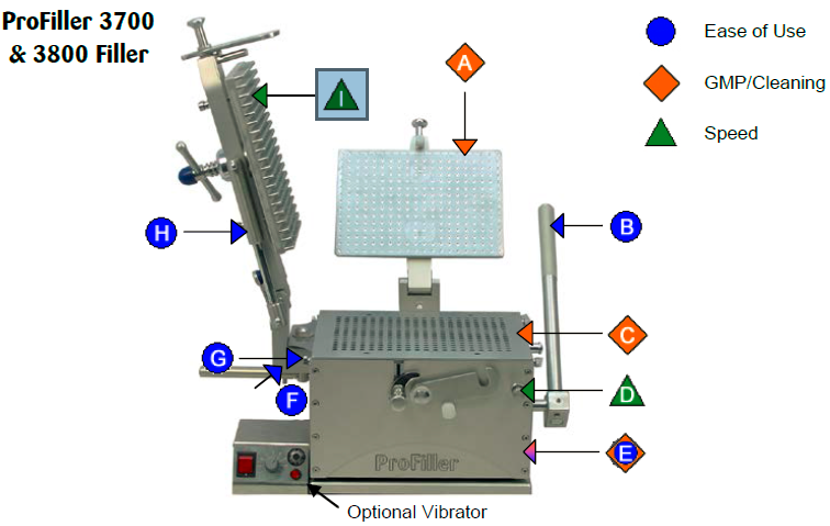Profiller 3700是新標準的300孔臺式膠囊填充系統,與之對應的有歐洲風格的半自動臺式膠囊填充系統profiller3800。該儀器具有較高的填充效率、快速的尺寸轉變、易于清潔的設計和可選的配件,操作方便和各種升級選項。