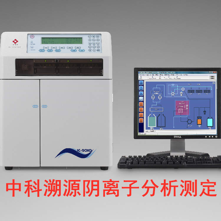 陰離子分析: 氟離子、氯離子、溴離子、碘離子、硝酸根離子、磷酸根離子、亞硝酸根離子、硫酸根離子、溴酸根離子、氯酸根離子等,以及有機酸分析