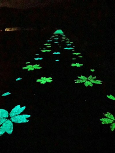 根據(jù)發(fā)光石的不同顏色和不同的發(fā)光色彩,可以設(shè)計出各種各樣,色彩斑斕的畫面和圖案。在建筑裝飾和家裝領(lǐng)域有廣闊的應(yīng)用前景。可廣泛應(yīng)用于道路,建材,室內(nèi)外裝飾等。例如,晚上的公園道路就像星空密布,繁星點(diǎn)點(diǎn),璀璨奪目。不僅起到了裝飾作用,并且在沒有電力或突然斷電的情況下起到了安全和指示作用。發(fā)光碎石可以根據(jù)客戶要求定做加工。