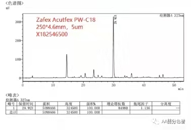 通過以上實驗可以看出,Zafex Acutfex PW-C18液相檢測色譜圖,完全符合中國藥典要求,與其他品牌的色譜柱的出峰與雜質的分離效果圖對比,喆分色譜柱更適合藥典方法蒲公英的液相檢測,為客戶提供一個更好的選擇。