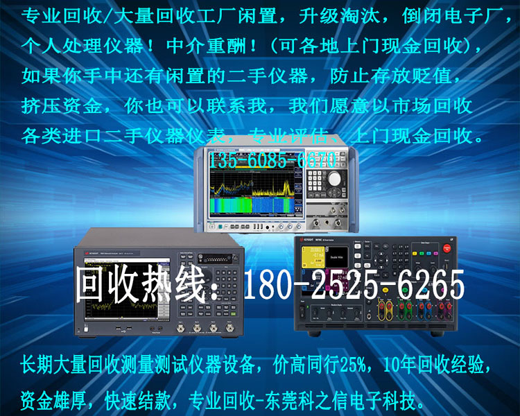 長(zhǎng)期現(xiàn)金高價(jià)上門(mén)回收:倒閉工廠、工廠閑置、個(gè)人閑置二手儀器儀表。網(wǎng)絡(luò)分析儀、頻譜分析儀、綜合測(cè)試儀、數(shù)字通訊測(cè)試儀、高頻信號(hào)發(fā)生器信號(hào)源、示波器、音頻分析儀等。為您解決儀器閑置等問(wèn)題,使您的資金快速回籠。專業(yè)儀器回收,長(zhǎng)期回收電子儀器,讓你的閑置儀器變廢為寶,歡迎來(lái)電咨詢。互惠互利,共創(chuàng)雙贏!中介重酬!!!