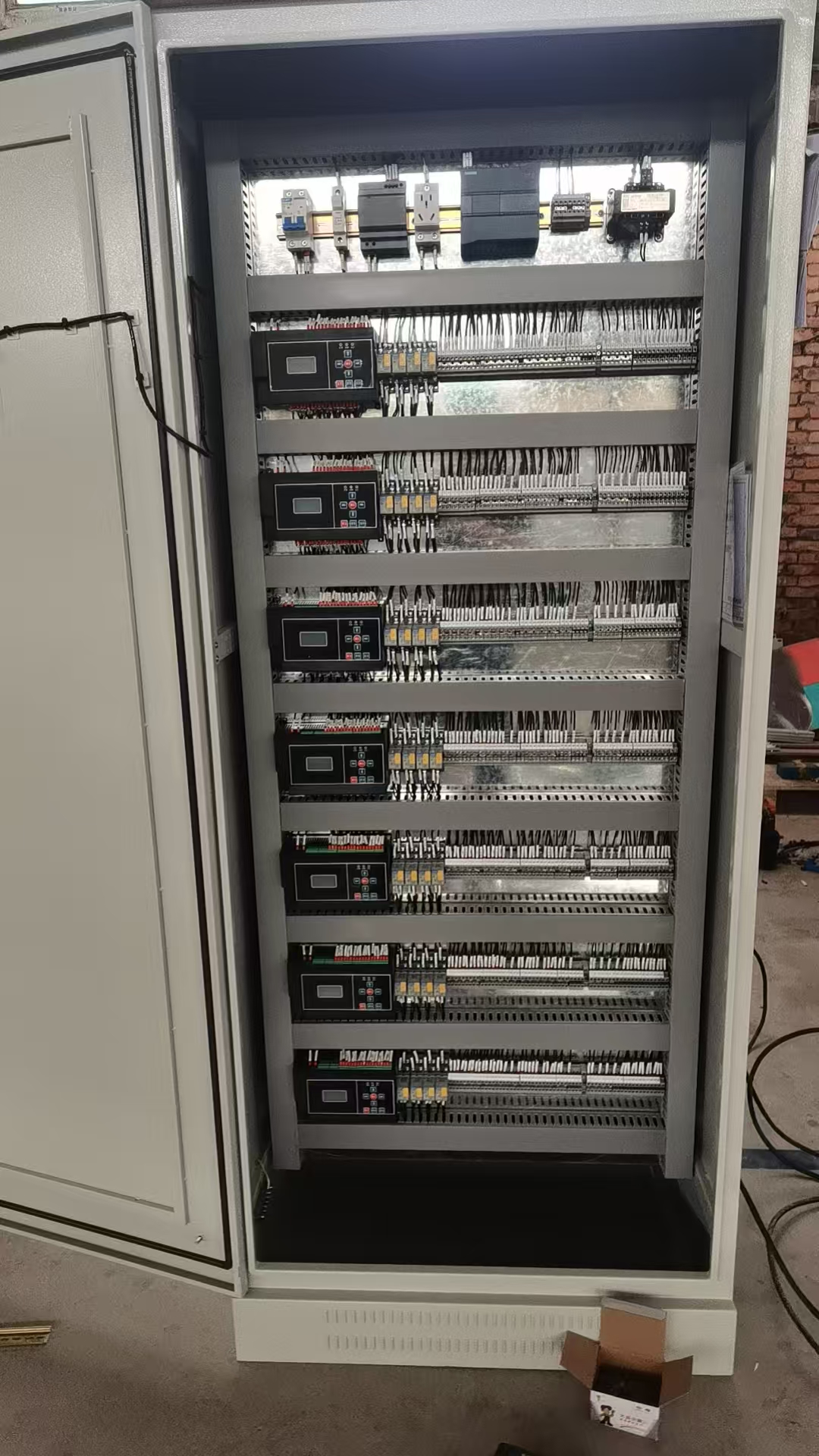 專用一體化控制器、導軌式安裝,外置能效監測模塊和三相互感器,電機驅動裝置和三相一體互感器,具備智能配電、智控水泵、能效優化、設備自檢等功能,并與配電箱里的CPS控制與保護開關配合,使配電箱具有缺相、斷相、過壓、欠壓、過流、欠流、短路、漏電與三相不平衡保護等全方位機電一體化融合功能,通信接口兼具RS485、LAN,可做協議網關集成開放接入電控終端附近通訊設備排風機電控終端;配電箱門外自帶高清觸摸屏;