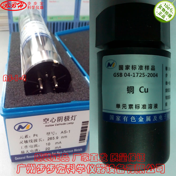 空心陰極燈概況 空心陰極燈是一種廣泛應用于原子吸收光譜吸收光譜分析,原子熒光光譜分析,分析吸收光譜分析以及其他 需用線光譜光源和基準波長等儀器中的銳線光源。 我院致力于空心陰極燈的銷售。我院代理的普通空心陰極燈(AS系列)具有特征譜線光譜輻射強度高,穩定性好,背景低 ,壽命長等熱點,該產品靠優質的質量已經成功打入國際市場。 高性能空心陰極燈已獲中國專利權(CN-87201859)和美國發明專利權(U.S.4.833.366). 其主要特點是,由于使用兩個分離的空心陰極,從而明顯提高了輻射光強,限度地降低自吸,使譜線變寬,同時也提高了原子吸收光譜分析的線性和靈敏度。 高性能汞空心陰極燈已獲中國專利(ZL 01 2 67741.8)(科技部技改項目)。 其主要特點是:限度地提高了原子 熒光輻射強度和穩定性 請大家仔細認準產品規格選購,如果對產品有疑問,廣州步步宏科學儀器有限公司歡迎各位咨詢,我們必定竭誠為您服務。感謝大家的支持,廣州步步宏科學設備有限公司必定努力得很好