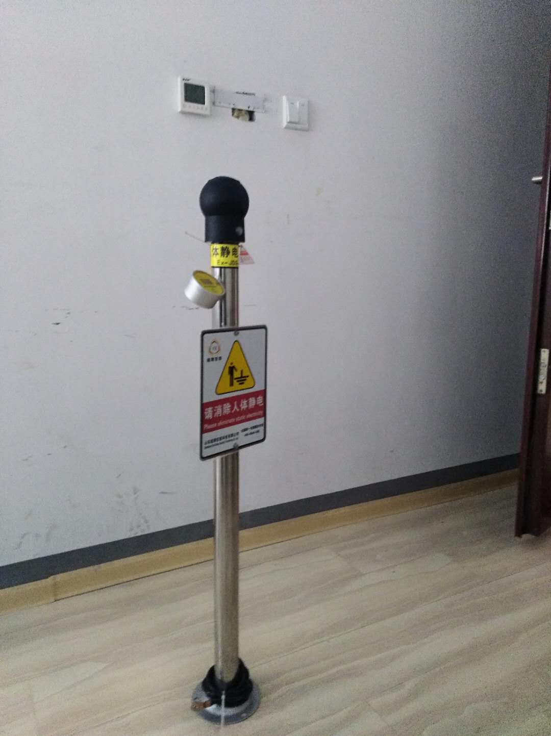 在球座上有一小孔,孔內(nèi)有靜電指示燈,如果你身體內(nèi)有靜電,只需用手指觸摸一下上面的金屬球(一秒鐘)既可消除人體的靜電,(指示燈亮一下后熄滅)。晚上明顯,白天不明顯。如果身體內(nèi)靜電小于100V或沒有靜電,靜電指示燈則不亮。