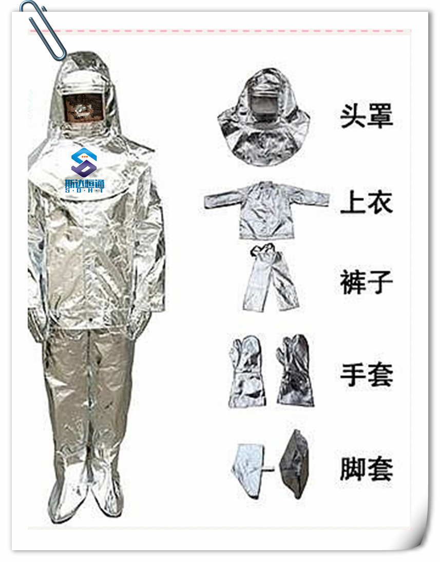 ? 用途.用于熱轱射強場所的全身防護.具備抗熱輻射.耐高溫.等性能.在800–1000度熱輻射下.近火場高溫區