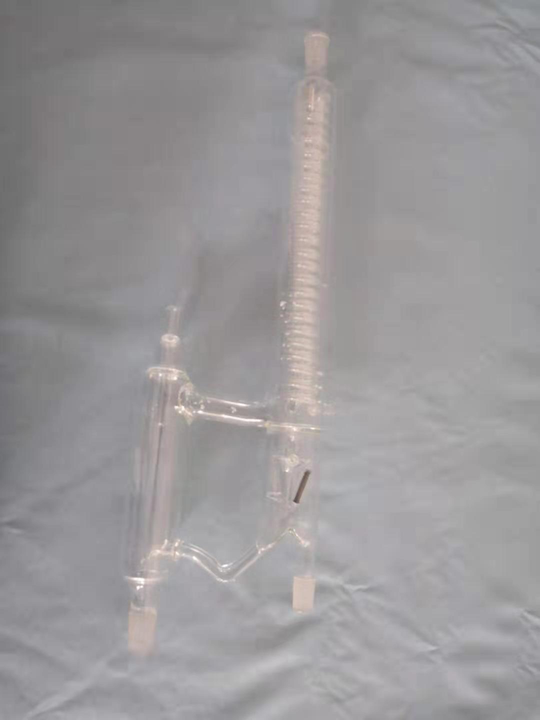 - 回流頭用用蛇形冷凝管冷卻,回流比用帶磁鐵三角漏斗的搖擺的時(shí)間來(lái)決定。由兩個(gè)部件組成,清洗方便。該回流頭和回流比控制器及電磁鐵線圈配合,能夠自動(dòng)控制精餾塔回流比,通過(guò)控制電磁鐵的開(kāi)啟和關(guān)閉時(shí)間來(lái)控制回流的多少,回流頭能有效減輕操作工勞動(dòng)強(qiáng)度,直觀、易操控,易維護(hù),運(yùn)行可靠,工藝重復(fù)方便,能準(zhǔn)確調(diào)節(jié)塔內(nèi)回流量與采出量的比例。適用間歇式及連續(xù)式操作的常規(guī)精餾以及萃取精餾.恒沸精餾等殊精餾過(guò)程。