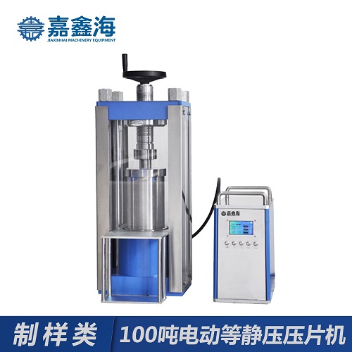 - 嘉鑫海100噸電動等靜壓壓片機(分體式)可用于長柱體樣品的壓制,以及樣品的二次成型;樣品通過等靜壓壓制后,樣品的密度更加緊密、均勻,適用于對成型密度均勻性要求較高的樣品。程序控制,自動加壓、自動補壓、定時泄壓,液晶大屏顯示,可自動換算樣品所受實時實際壓強,上板搖臂結構,操作更簡單方便,機體鋼板防護并配有有機玻璃防護門,安全性更強。