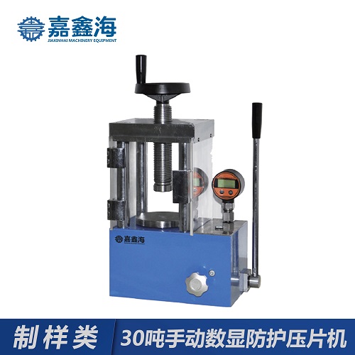 嘉鑫海30噸手動數顯防護壓片機用一體式結構,油池、主板、油缸,在一個主板上,無密封連接點,減少可能漏油點,大大降低了壓片機的漏油幾率。此外本產品還可與傅里葉紅外光譜儀、熒光光譜儀等測試儀器配套制樣使用。本公司壓片機配套模具規格齊全,特殊規格可定做。