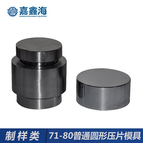 - 嘉鑫海71-80mm圓形壓片模具 模具材質:日本高速工具鋼ASSAB+17,壓頭硬度:HRC68-HRC70,腔體深度:20mm,規格:Ф2,Ф3,Ф4,Ф5,Ф6mm,20mm。30mm,50mm等,非標定制。是實驗室粉末樣品壓制成型中常見的一種模具,配合壓片機使用,可將溴化鉀(KBr)等各種粉末材料壓制成型,并制作出各種圓形試片、柱體或其他形狀進行科學分析研究;現已廣泛應用于科研、教學、催化、檢測、制藥、化工以及新材料研發等各個領域;此外,該產品還可與鈣鐵分析儀、傅立葉紅外光譜儀(IR)、X射線熒光光譜儀(XRF)等分析測試儀器配套制樣使用,可替代同類進口產品。