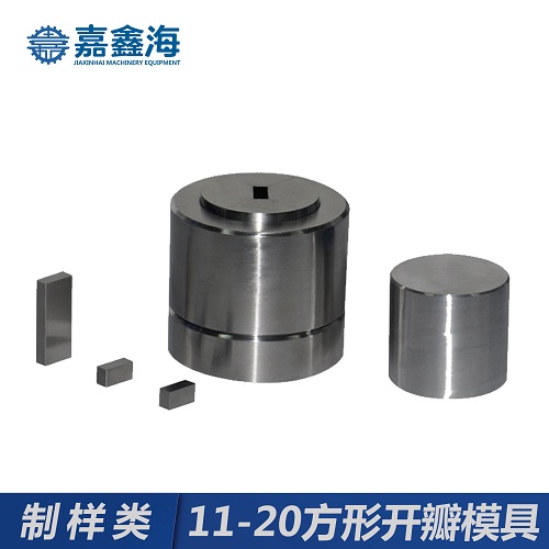 - 嘉鑫海11-20mm方形開瓣模具適用于一些不易成型的細條形樣品的壓制,模具通過快速拆開模具外套來解決退模過程中樣品膨脹變形導致的樣品不成型問題,模具壓片寬度:3-100mm,特殊模具尺寸可以根據客戶要求來定做。模具采用CR12模具鋼材質,內芯分四瓣。使用時,請注意不要超壓,否則容易壓壞模具。