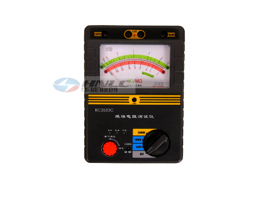 1、BC2533指針式絕緣電阻測試儀的絕緣測試在500V最高可測20GΩ,在1000V最高可測40GΩ,在2500V最高可測100GΩ。