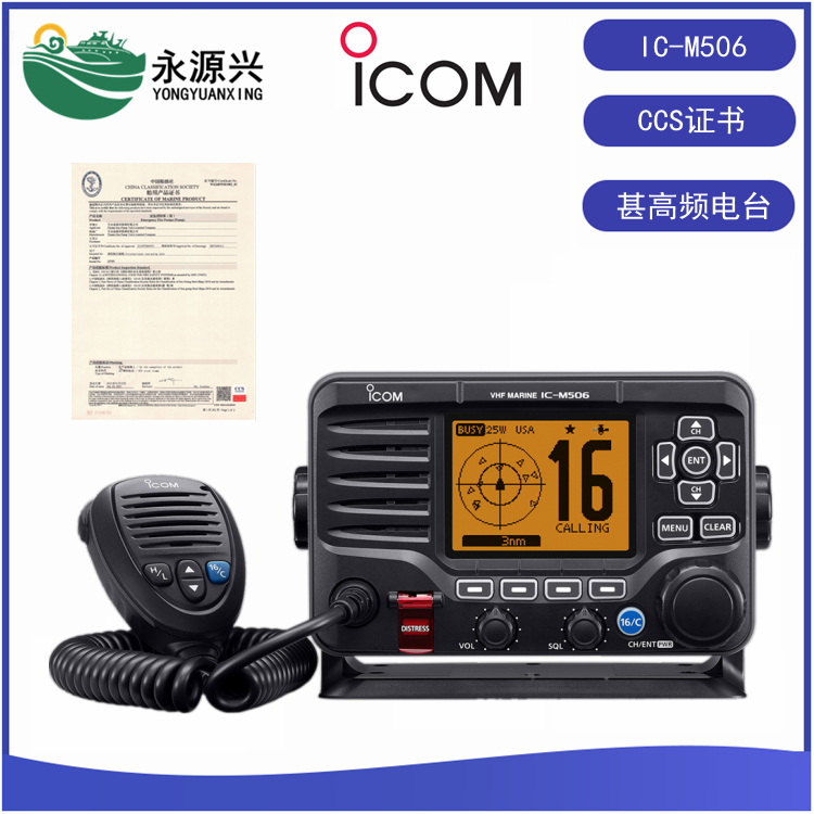 日本ICOM艾可慕 IC-M506船用甚高頻電臺 臺式甚高頻電臺 海事船載甚高頻固定電臺 帶船檢認可CCS 可選AIS功能 25W對講機 對講機船載電臺AIS電臺船用對講機 臺式VHF甚高頻 船用防水固定電臺