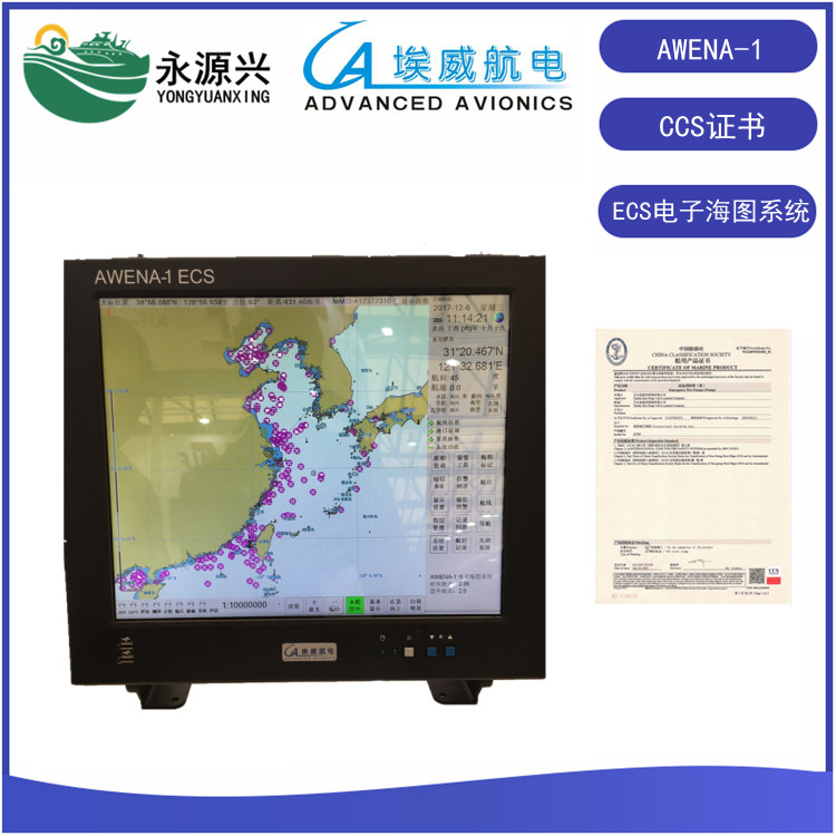 上海埃威AWENA-1電子海圖顯示系統(ECS)中國船級社認證CCS證書 埃威17寸ECS電子海圖機 標配國內海圖 AWENA-1電子海圖顯示系統