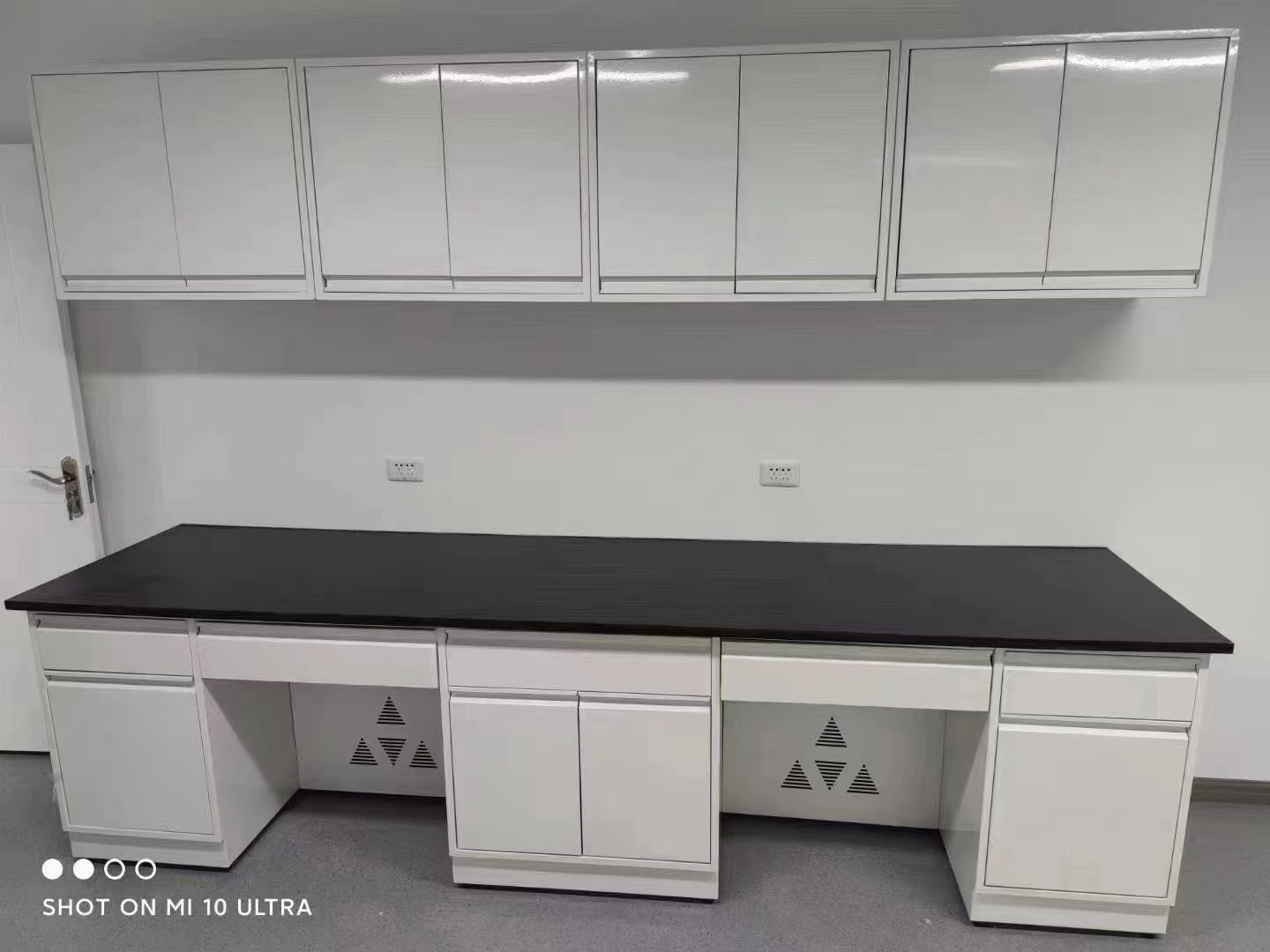 1、材質(zhì):全柜體采用1.0mm厚上海寶鋼熱鍍鋅鋼板,柜體表面環(huán)氧樹脂粉末靜電噴涂,高溫固化,附著力高,耐劃,耐酸堿,美觀耐用。 2、配件: 滑軌:16寸DTC專用滑軌,靜音順滑。 合頁:采用DTC阻尼鉸鏈,115度打開。 調(diào)整腳:采用直徑φ8mm,著地部分外六角尼龍,總高為25MM,可調(diào)高度為15MM。 拉手:標(biāo)配一體成型鋁合金拉手,選配PVC嵌入式拉手/鋼制一字拉手 3、加工工藝: 板材下料:采用德國進(jìn)口的2000W數(shù)控光纖激光切割機(jī),速度高,下料快,工差小。 折彎:全自動數(shù)控折彎,機(jī)械人操作,精度高,誤差少。 焊接:點(diǎn)焊和氬弧焊。 噴涂:全自動噴房,進(jìn)口瓦格那高級噴槍,流水線加溫固化爐。 4、柜體結(jié)構(gòu): 全新柜體結(jié)構(gòu)更加穩(wěn)定耐用,每個單元均可拆裝結(jié)構(gòu),包裝小,裝安前搬運(yùn)方便,體積小不易碰到實(shí)驗(yàn)室的過道及樓梯,上樓容易,移動快捷。 5、組裝: 規(guī)格多,組合靈活,根據(jù)房間大小,可以任意組合成需要的實(shí)驗(yàn)臺(邊臺或中央臺),亦可選配吊柜,柜體從300主機(jī)柜到1000雙門雙抽柜,每隔25MM就有一個單元柜,還配有帶抽屜坐位、帶鍵盤架坐位和空坐位, 6、顏色: 柜體為主流時尚亞光純白色,并可配高級亞光灰或活躍亞光淡藍(lán)色。 7、面臺:標(biāo)配12.7M M普利貝特實(shí)心理化板、選配環(huán)氧樹脂臺面/陶瓷臺面 8、其他配件:水槽、水龍頭、滴水架、洗眼器、萬向吸氣罩、原子吸收罩(品牌可選)