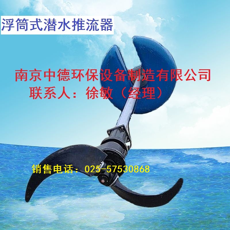 本廠自行開發的潛水型浮筒攪拌機,結構緊湊體積小。中高速攪拌機由浮筒、潛水電機、葉輪、鋼絲繩和導桿組成;低速浮筒攪拌機由葉槳、減速機、潛水電機、鋼絲繩、主軸和浮筒組成。