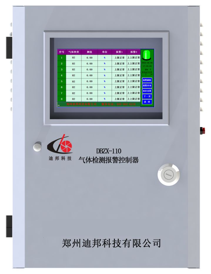 DBZX-110氣體檢測報警控制器,是我公司基于嵌入式系統(tǒng)開發(fā)的一款報警控制器。該控制器采用柜式或壁掛式安裝,功能實用,操作方便,可與我公司的氣體探測器共同組成工業(yè)用氣體報警系統(tǒng)。控制器直接顯示多路被檢測氣體濃度和報警情況,當(dāng)被檢氣體濃度達到預(yù)設(shè)報警值時,系統(tǒng)會發(fā)出報警信號,以提醒采取安全措施,防止安全事故。控制器可通過RS485信號或(4-20)mA信號與下位機相連,從而構(gòu)成遠程監(jiān)控、本地監(jiān)控、現(xiàn)場監(jiān)控的多級監(jiān)控網(wǎng)絡(luò),大大提高了監(jiān)控的實時性、準確性。