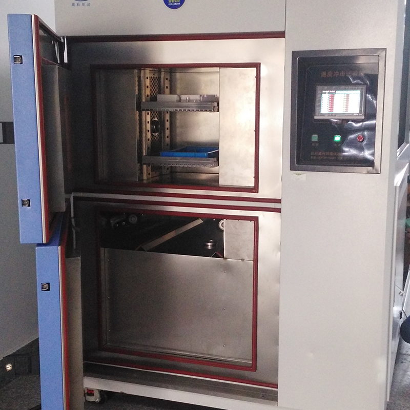 溫度沖擊試驗箱又叫冷熱沖擊試驗箱,其分為吊籃式垂直冷熱沖擊試驗箱或水平滑行式冷熱沖擊試驗箱,它廣泛用于電工、電子產品整機及零部件進行耐寒試驗、溫度快速變化或漸變條件下的適應性試驗,特別適用于進行電工、電子產品的環境應力篩選(ESS)試驗。