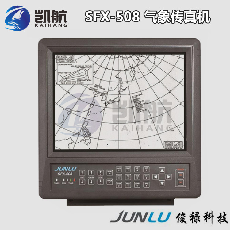SFX508型氣象傳真機是國內首臺液晶顯示氣象傳真機,符合《中華人民共和國國家標準》GB/T18913-2002/ISO 9876:1997標準以及國際無線電咨詢委員會CCIR343-1:1984號建議和世界氣象組織WMONO386,Part -7:1986 《無線電氣象圖的傳真傳輸》等技術要求。擁有15英寸高分辨率LCD顯示。具有存儲圖像,放大顯示,編程信道等多種功能。無紙化,無污染。抗干擾設計,圖像清晰可辨,選擇合適電臺,自動接收,更多達900個頻道可選。配置專用打印機可將接收的圖形直接打印到A4幅面的紙張上。獲得CCS頒發的型式認可證書。