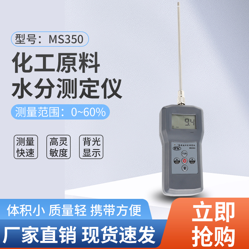 MS350水分測定儀,可用于測量化工粉末、煤粉、泥沙、河沙、江沙、細沙、粗砂、石英砂、型砂、機制砂、海沙等等物質水分含量。其測量水分范圍寬、精度高、顯示清晰、測量迅速、性能穩定、指標可靠,而且體積小、重量輕,可隨身攜帶在現場快速檢測,使用簡單方便。
