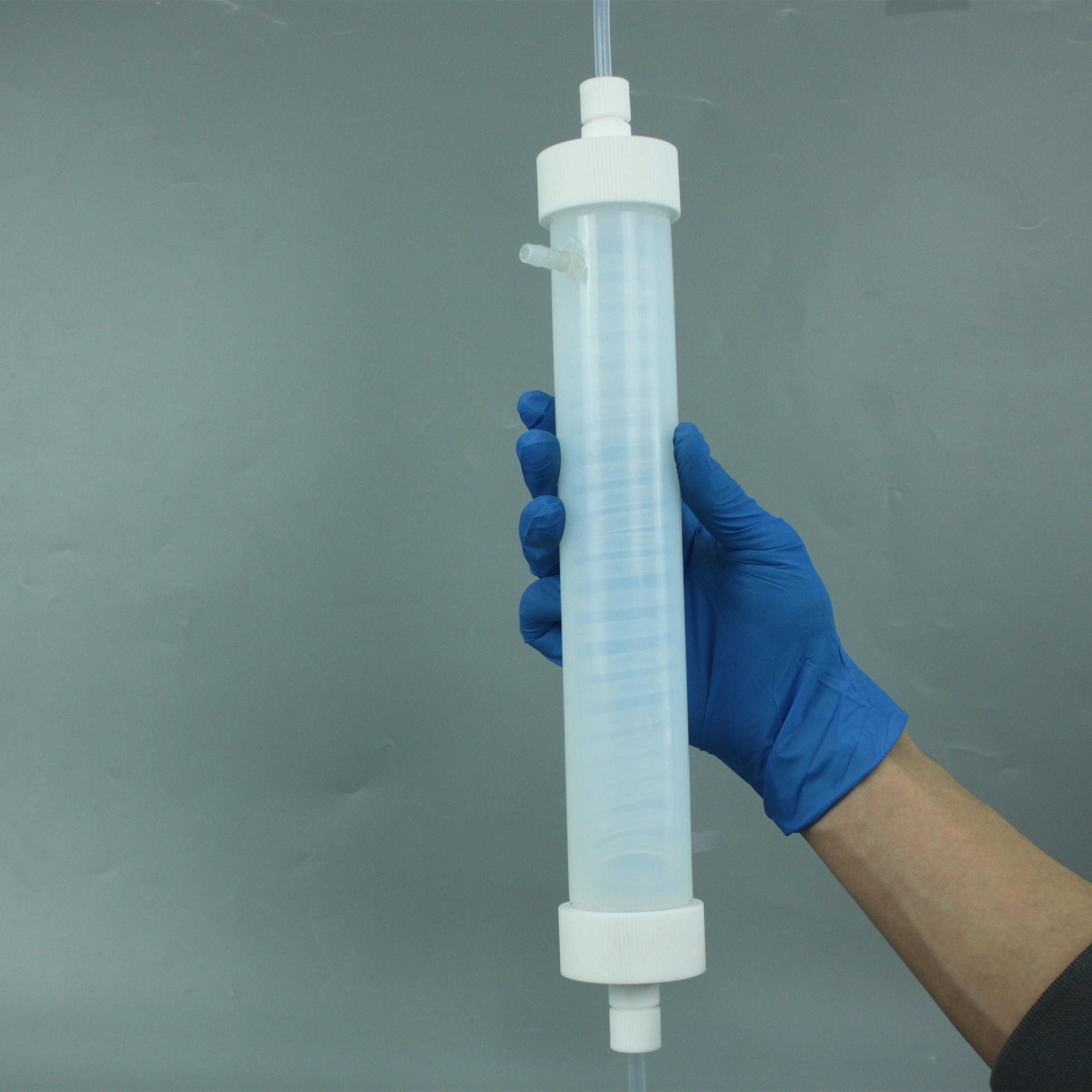 PFA直型冷凝管:它的內部是一根直的PFA管,外面套著一個直徑更大的PFA管,兩端同樣的PTFE螺紋蓋連接密封,上下兩個寶塔頭是PFA材質。