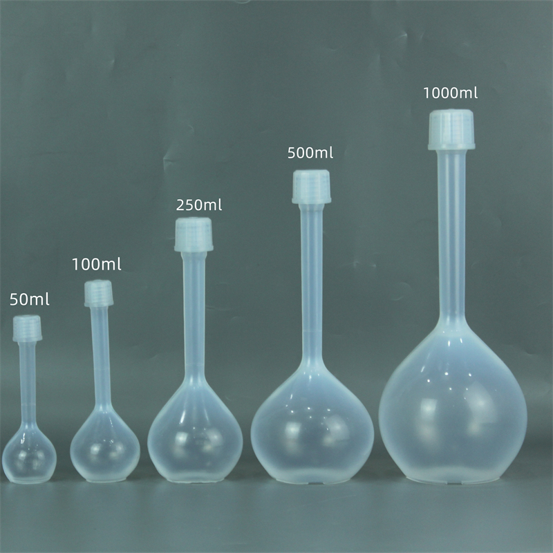 PFA容量瓶與FEP、四氟的相比穩(wěn)定性更好準(zhǔn)確度更高,是實驗室定容的得力產(chǎn)品,塑料容量瓶因地區(qū)差異定容刻度線會有所影響,所以以使用方重新定容為準(zhǔn)!