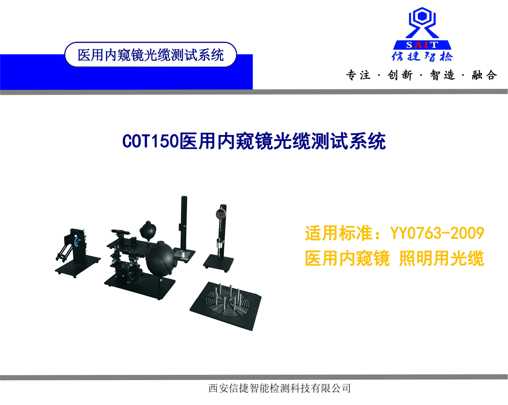 西安信捷是集研發、生產和銷售為一體的高新技術企業,其主營產品有:內窺鏡光學性能檢測、內窺鏡成像質量檢測、激光安全性能檢測系統;內窺鏡冷光源檢測、光纜、眼底相機、光固化機、醫用牙科檢測設備等的醫療設備的光學性能、物理性能的專用檢測設備及測試分析軟件。設備配置及植入算法適用于硬式光學內窺鏡、軟式光學內窺鏡、軟式電子內窺鏡、硬式電子內窺鏡、膠囊式內窺鏡的光學性能檢測。
