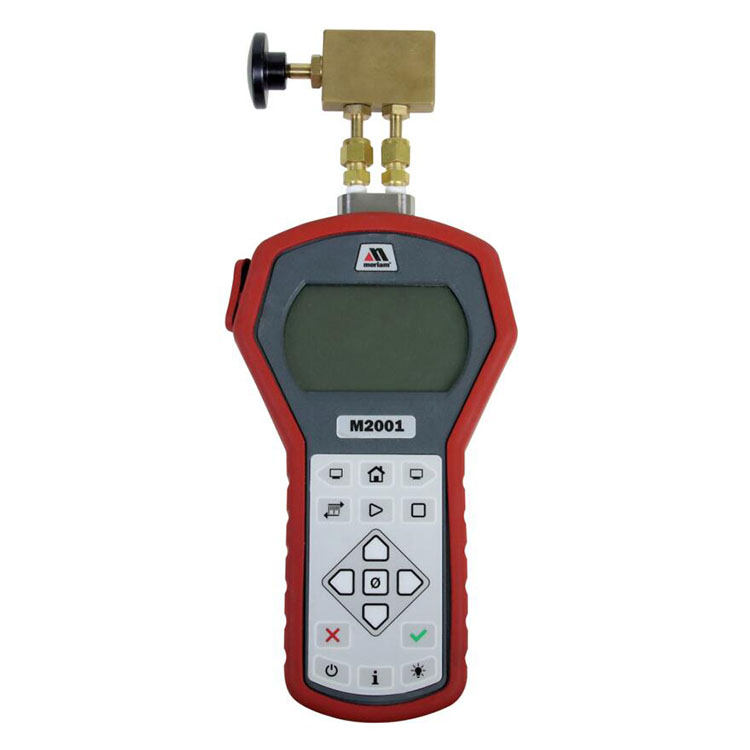 Meriam M2001 輕松進行旋轉(zhuǎn)(天然)氣表的跌落測試。硬件選件可保護M2001免受單側(cè)過壓的影響。 該裝置配有黃銅即按即讀閥或不銹鋼3閥歧管。