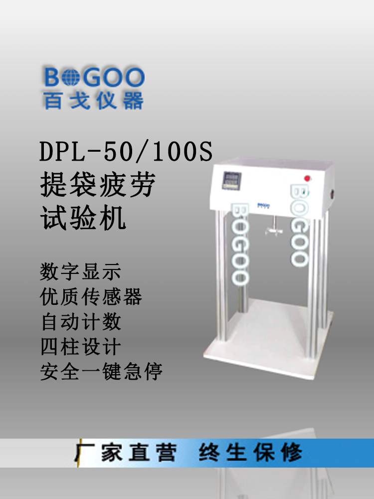 - 提袋疲勞試驗機是通過對內置一定重量物體的手提塑料袋,進行連續不間斷的上下疲勞振動,觀察手提塑料袋是否破損,以檢測塑料袋抗疲勞性能的儀器。