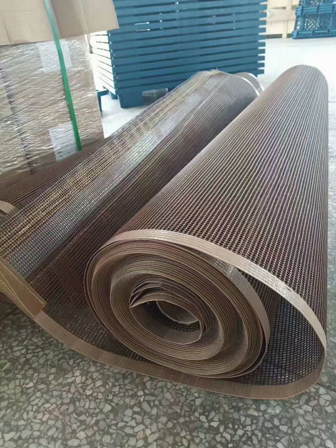 - 用途:適用于印染、印花行業平幅烘干機、烘房輸送帶;過熱機輸送帶;植絨流水線輸送帶;遠紅外烘干機輸送帶;絲印、電子、電路板行業烘干生產線輸送帶;印刷行業UV上光機、UV光固機輸送帶;包裝材料行業涂布機、上膠機、復合機輸送帶;服裝行業縮水定型機輸送帶;食品行業烘干生產線輸送帶等。是傳統鐵絲網輸送帶更新換代的理想產品。該產品耐高溫260攝氏度,耐腐蝕,耐微波;結構穩定,透氣率高,特氟龍涂層不粘性好,高強度插銷式接頭,安裝,拆卸方便;多種加強邊可供選擇。加工精度高,不易跑便,使用壽命長。