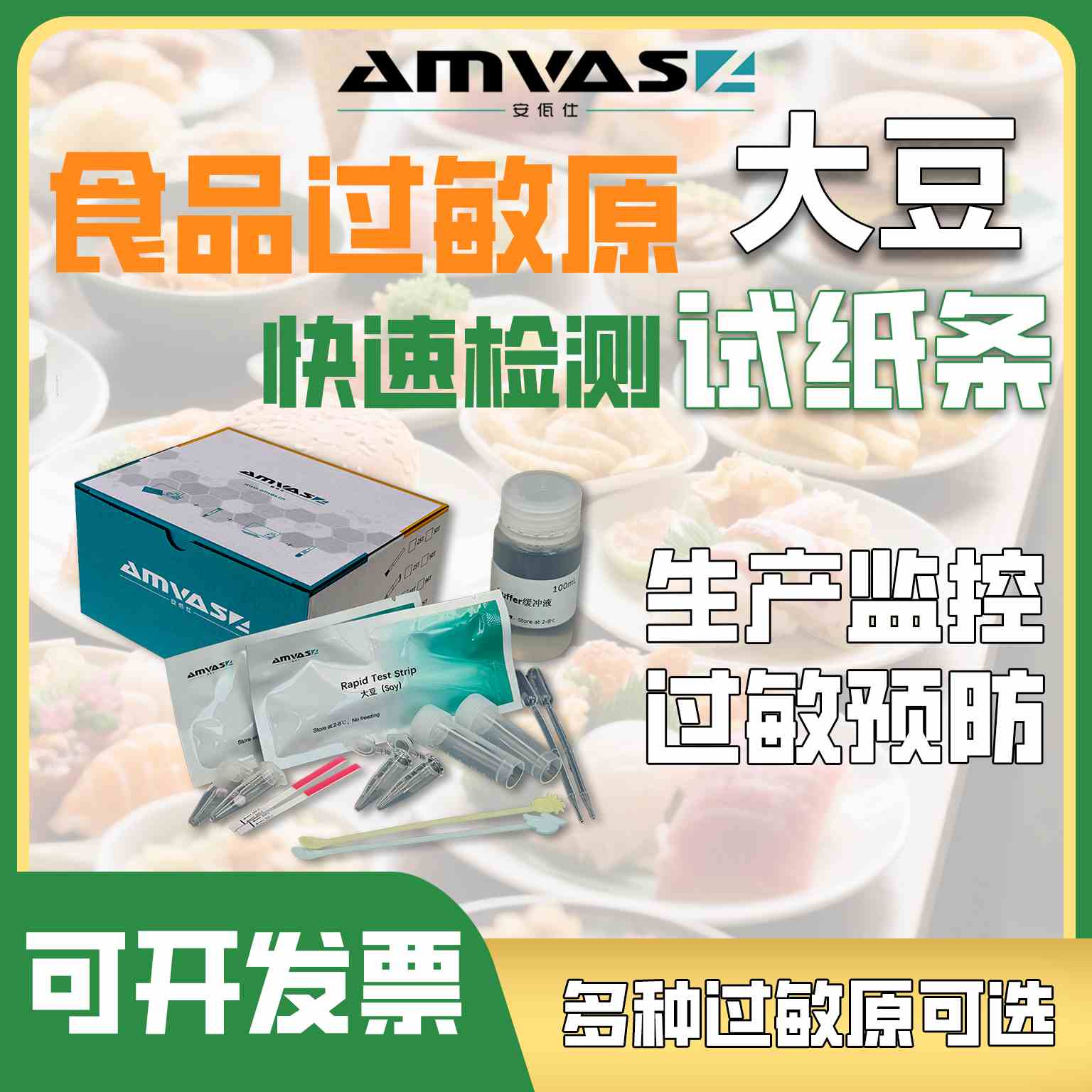 - 食品過敏原快速檢測試紙條運用免疫原理和膠體金層析技術,產品具有專一性強、敏感度高、檢測快速等特點。可用于檢測可用于檢測未知成分或標識不清的加工產品。不僅能檢測出食品中痕量過敏原,也可運用于食品加工過程中的質量管控,如進料、生產過程及成品檢測。AMVAS助力企業過敏原風險監控,提供多種過敏原檢測產品與樣品檢測服務。
