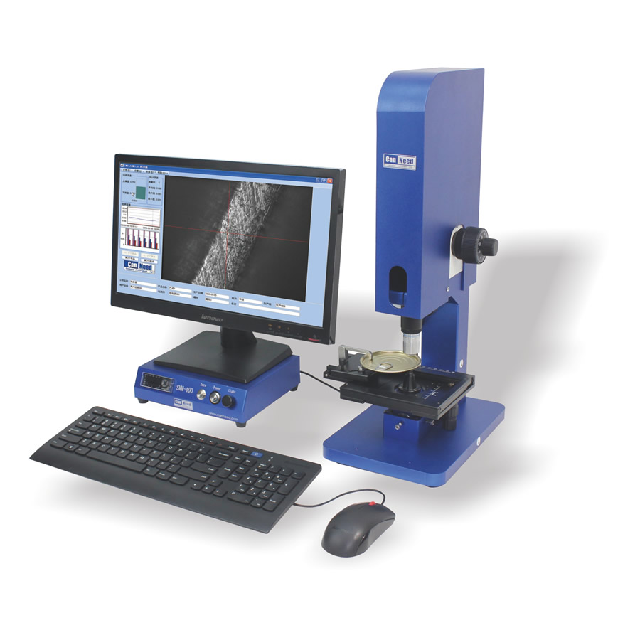 CanNeed-SMM-400罐蓋刻線檢測儀,采用顯微鏡測量技術,測量罐蓋刻線深度和剩余厚度。采用高清晰度CCD攝像系統,通過在顯示器上顯示罐蓋刻線凹槽底部的清晰圖像來方便定位,測量數據準確可靠、重現性好!罐蓋裝夾在一個3維工作臺上,方便定位和測量。配置進口數顯千分表,精度達到1um (0.001mm)。