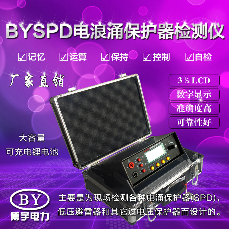 BYSPD電涌保護器測試儀是一款多功能檢測設(shè)備,也是對低壓避雷器和其它過電壓保護器而設(shè)計的。可用于檢測這些器件中核心器件的電壓限制器件或電壓開關(guān)器件的參數(shù);同樣適用于氧化鋅避雷器(壓敏電阻),固體放電管、金屬陶瓷二、三電極放電管、真空避雷管等過壓防護元件直流參數(shù)的測試。同時也是為了避免和減少由于避雷器(SPD)自身劣化而引起的供電事故和故障,對避雷器(SPD)的在線安全狀態(tài)進行有效的常規(guī)巡檢。