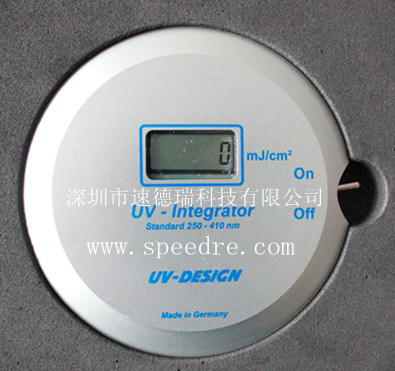 UV能量計是用于測量曝光裝置的UV能量的一種儀器,測量儀的主感器在測量儀的背面,測量范圍為250~410納米,測量時可直接顯示于UV能量計正面的顯示屏上讀出(單位:毫焦耳/平方厘米),該UV能量計的電源為3.6伏特的鋰電池,該電池由于使用了特別的能源節省線路,該電池可持續大約10000小時。