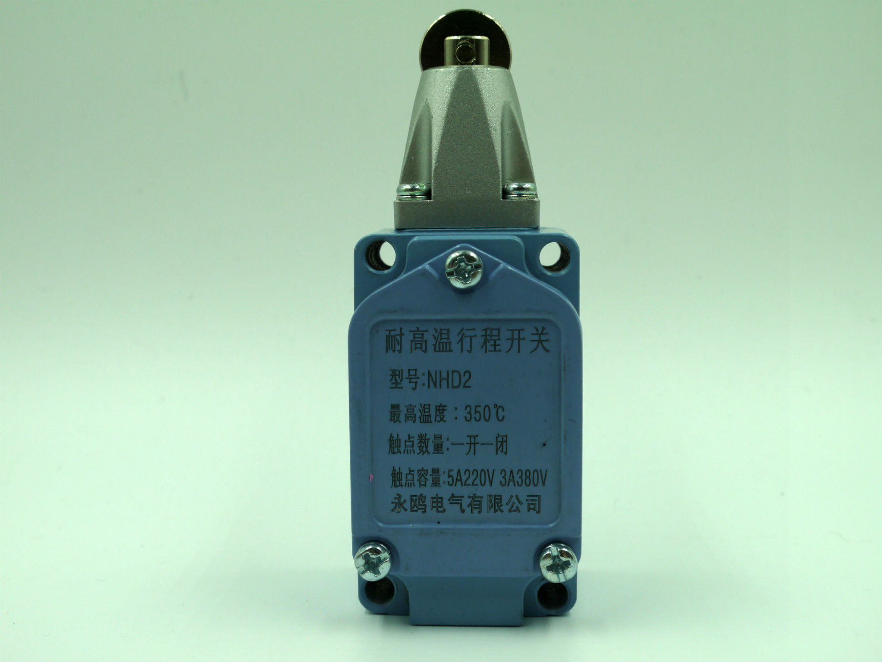 ????NHG2為滾輪(橫)柱塞型,通過碰撞行程頂部的滾輪,使滾輪往下壓,從而使開關的觸點動作而實現電路的切換。耐高溫行程開關整體外部為全金屬鋁合金材質,它的內部開關內部采用耐高溫材料澆鑄成的陶瓷全封閉觸點開關,一組常開一組常閉允許電流5A/AC?220V(其他電壓接受預定),觸點經過特殊處理后可在高溫環境下長時間使用而不被氧化或污染而導致損壞,為了提高產品在高溫環境下使用的時間,特別在耐高溫行程開關內部涂加了防護層,增加其高溫防護性能。。NHG系列耐高溫行程開關溫度為550℃,其中可分為滾子臂型、可調桿型、壓柱塞及滾輪壓柱型等十多種規格,可滿足不同場合使用要求。廣泛使用于電力、化工、石油、紡織、鋼鐵等行業